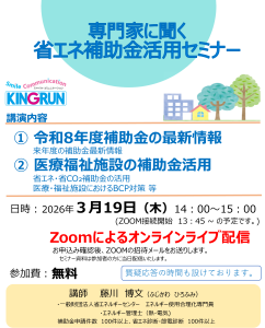 【3/19開催】令和8年度 補助金“最新情報”を徹底解説|医療・福祉施設の省エネ・BCP対策セミナー